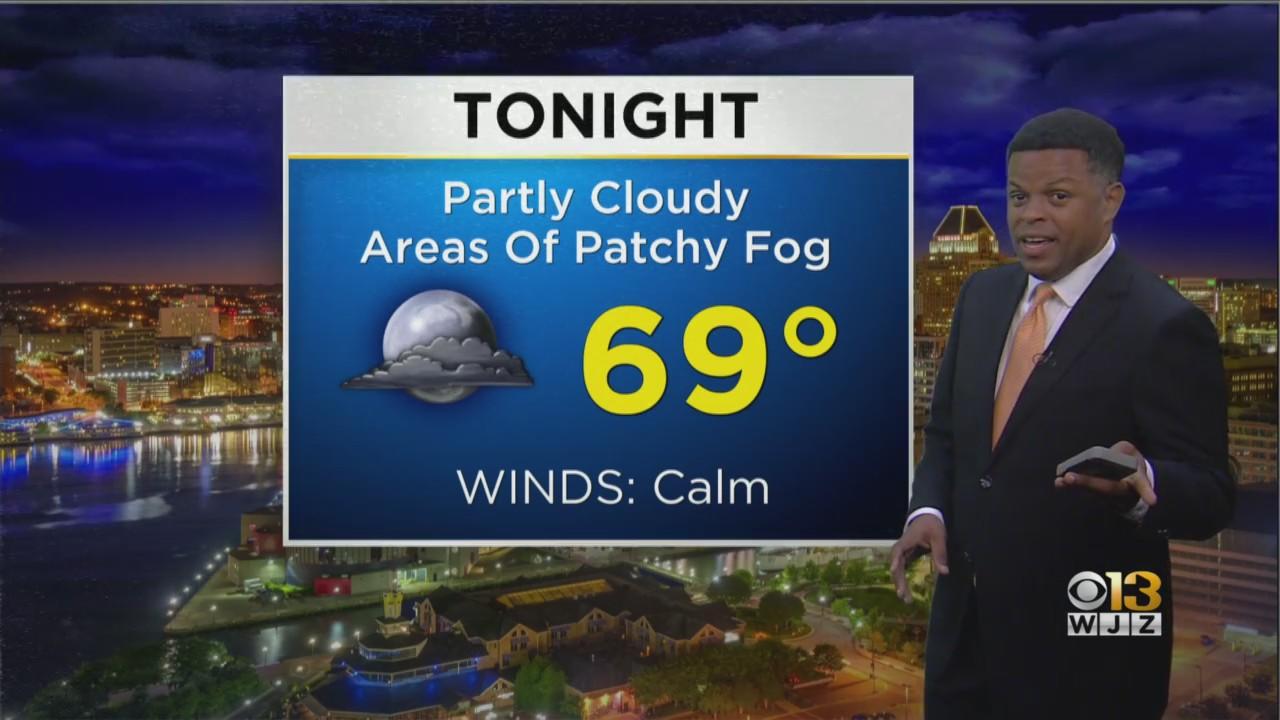 After a few showers on the Eastern Shore, it's partly cloudy with temperatures across Maryland in the 60's and 70's.