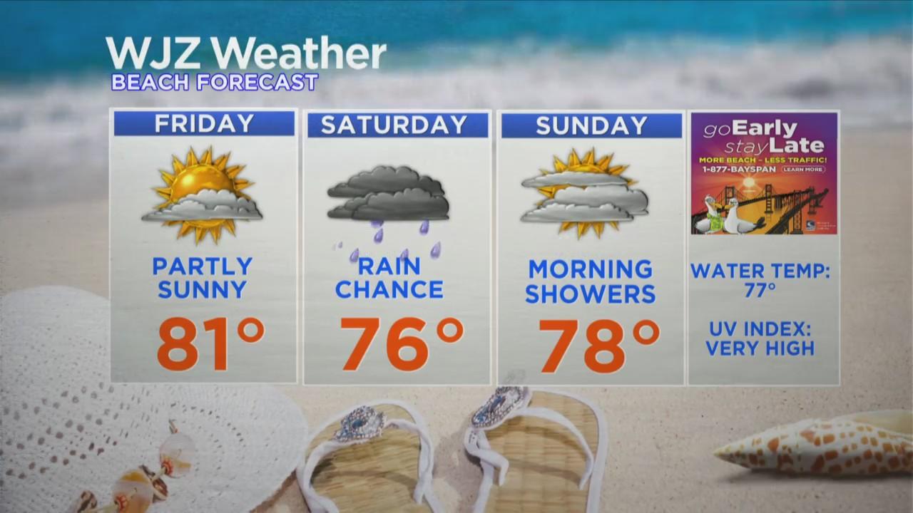 Heading to the beach this weekend? Friday would be the perfect day for that would 80-degree temperatures and plenty of sunshine. Saturday could be soggy, but Sunday might also be an opportune beach day.