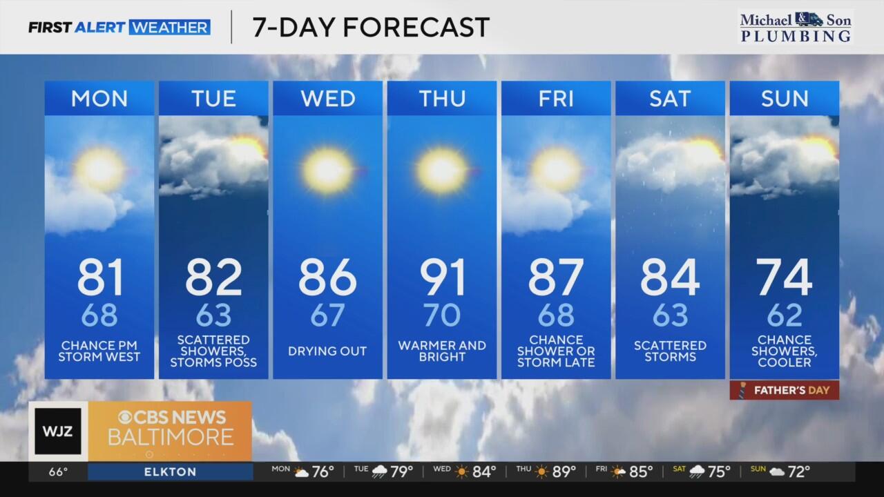 Foggy start, few showers possible Monday in Maryland