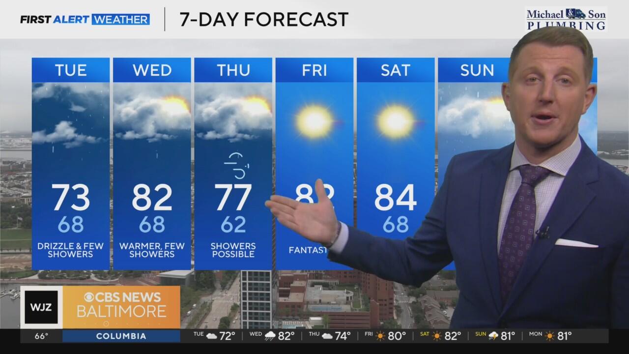 Gray, patchy drizzling and showers for Tuesday in Maryland