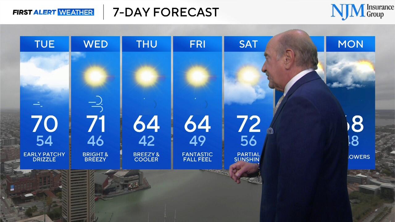 Expect off-and-on drizzle or light rain through the afternoon, especially around Baltimore and along I-95.