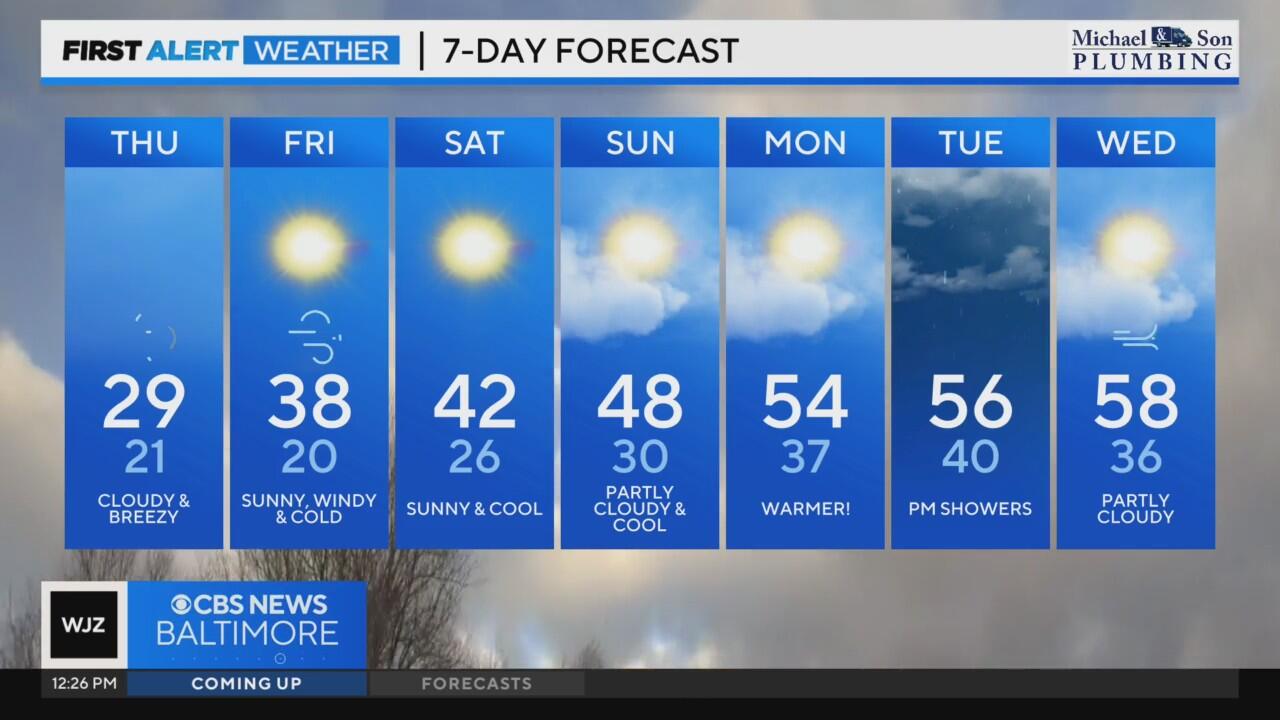 Gusty and numbing cold winds develop Thursday in Maryland