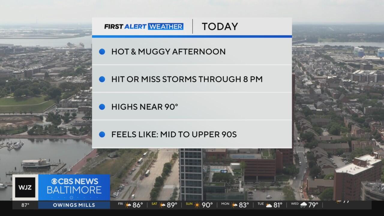 Hot, muggy afternoon, 'hit-or-miss' evening storms on Maryland's forecast