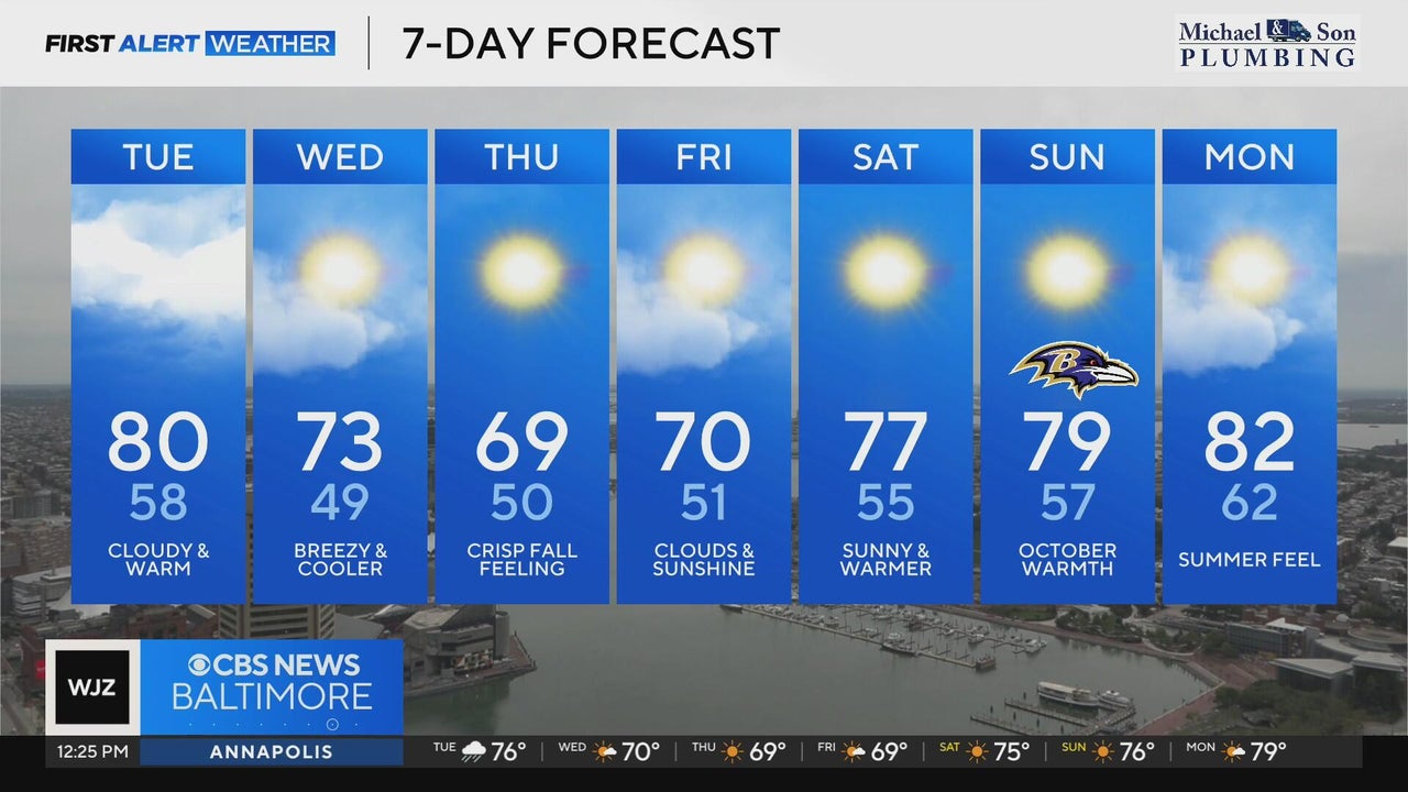 Hurricane Imelda is bringing cloudy skies to Maryland Tuesday. Fall weather will bring crisp air mid-week.