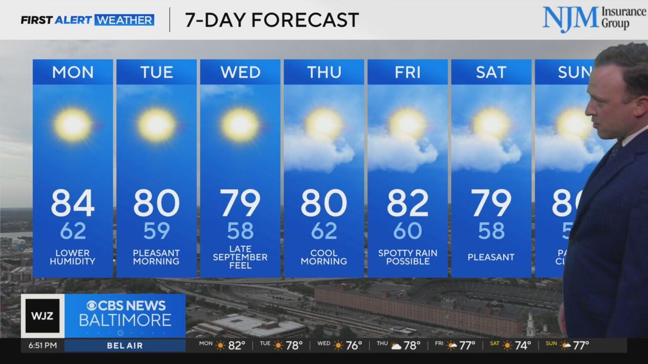 Lower humidity, pleasant for first day of school in Maryland