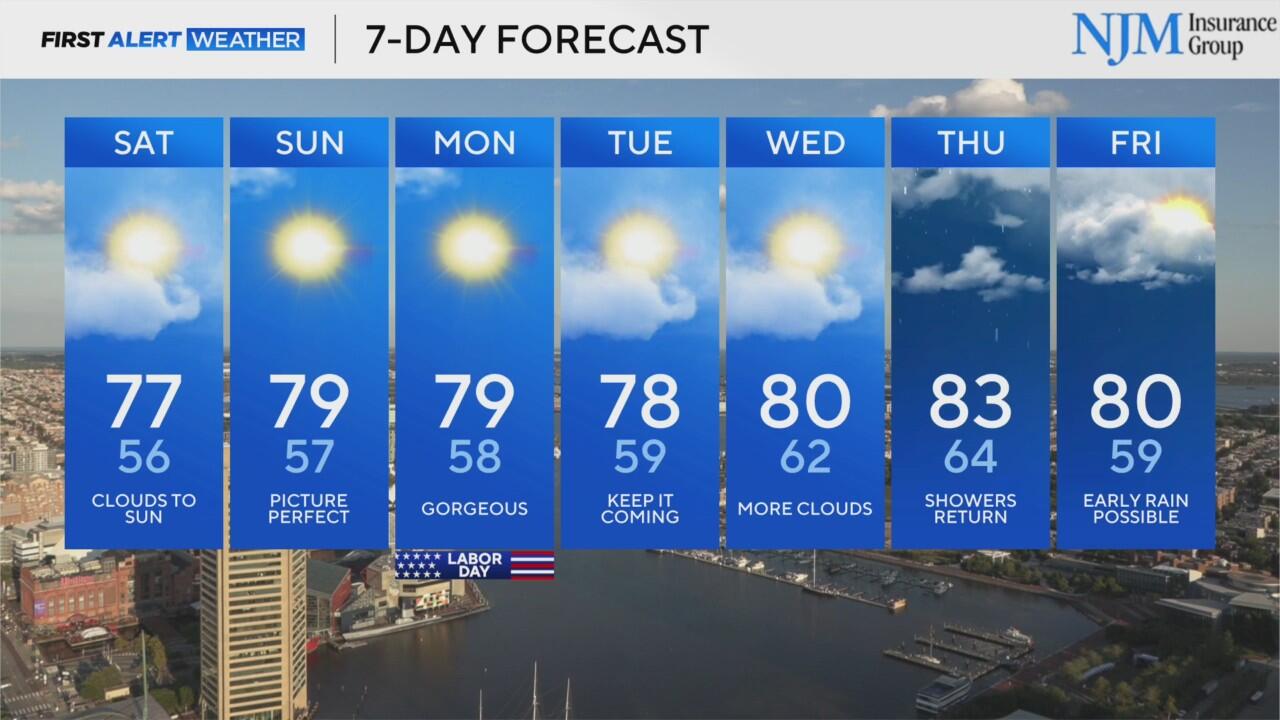 Marylanders can expect fall-like weather for the Labor Day weekend.