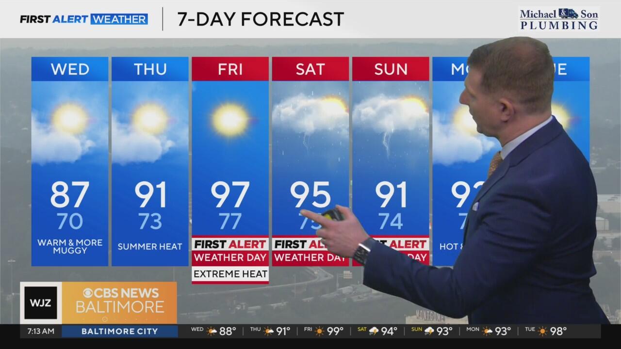 Wednesday will be sunny with slightly higher humidity. By Thursday, summer heat makes a full return.