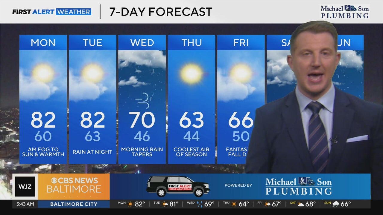 Patchy morning fog in Maryland before sunny, warm afternoon