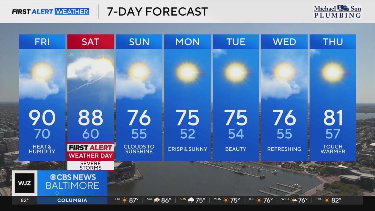 Scattered stormy weather returns to Maryland Saturday