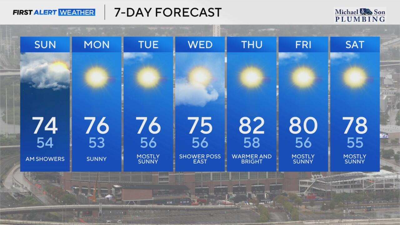 Showers clear out for your Sunday, temps peak in the 70s