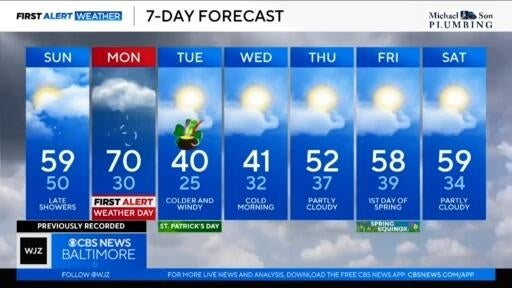 Showers expected in Maryland Sunday ahead of severe storms Monday