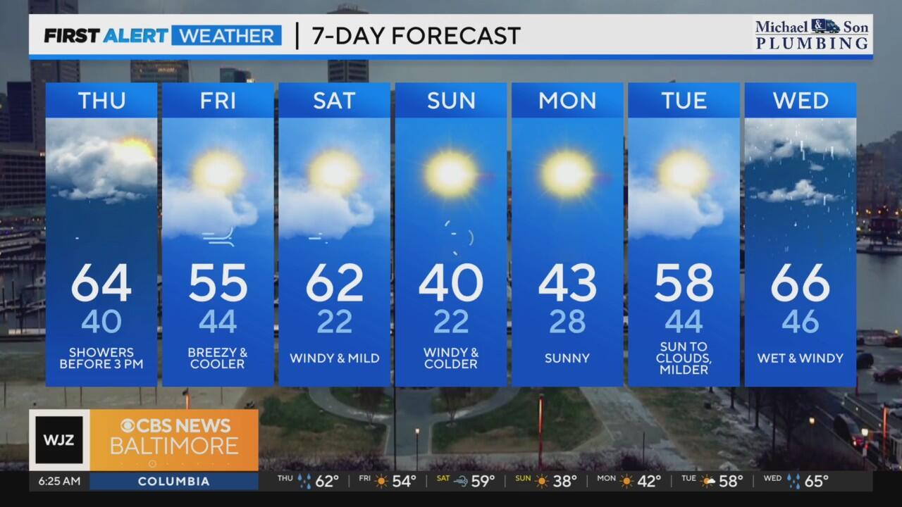 Showers expected through early afternoon in Maryland Thursday