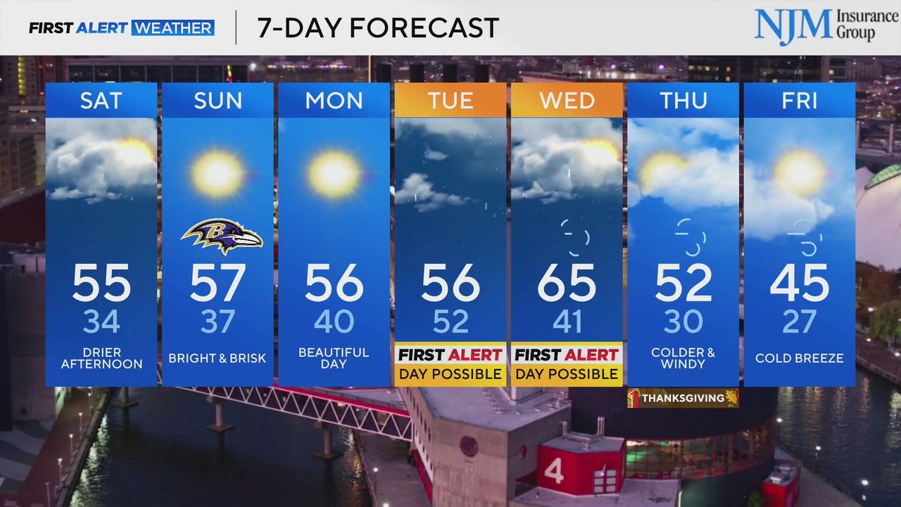 Showers will move through Maryland late Friday, into Saturday morning