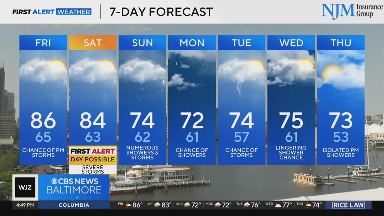 Spotty Thursday evening storms become widespread across Maryland this weekend
