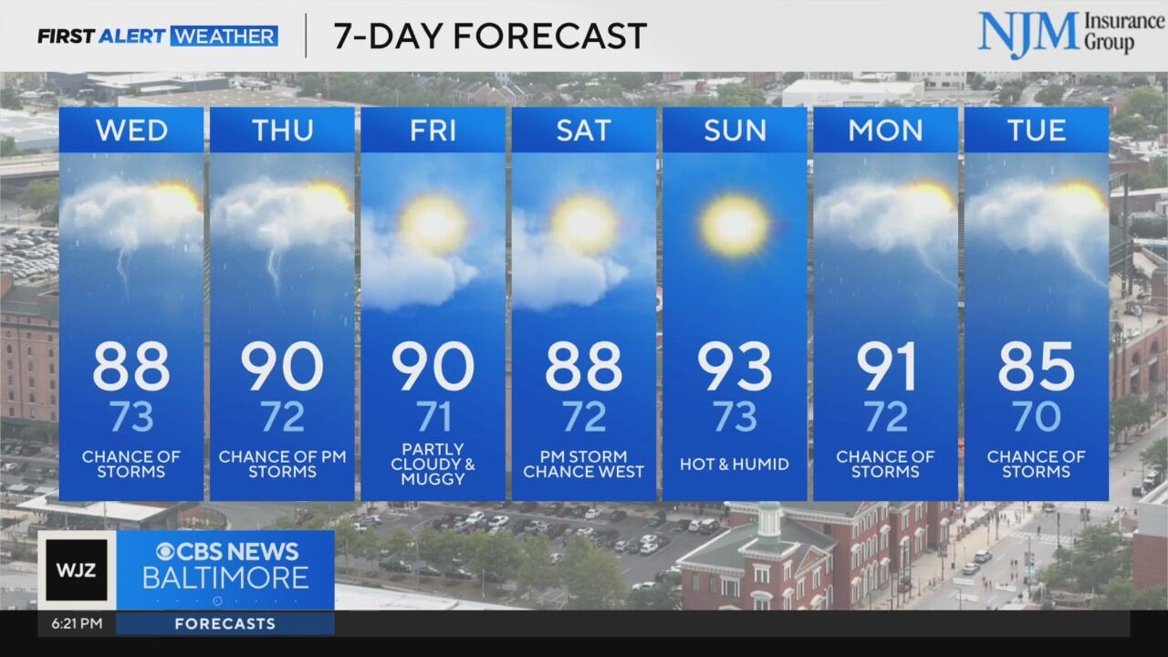 Storm chances, high humidity Wednesday in Maryland