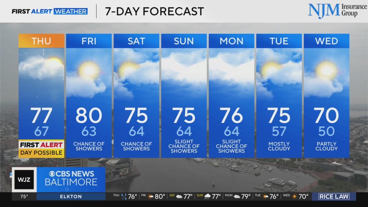 Storm chances stick around Thursday in Maryland