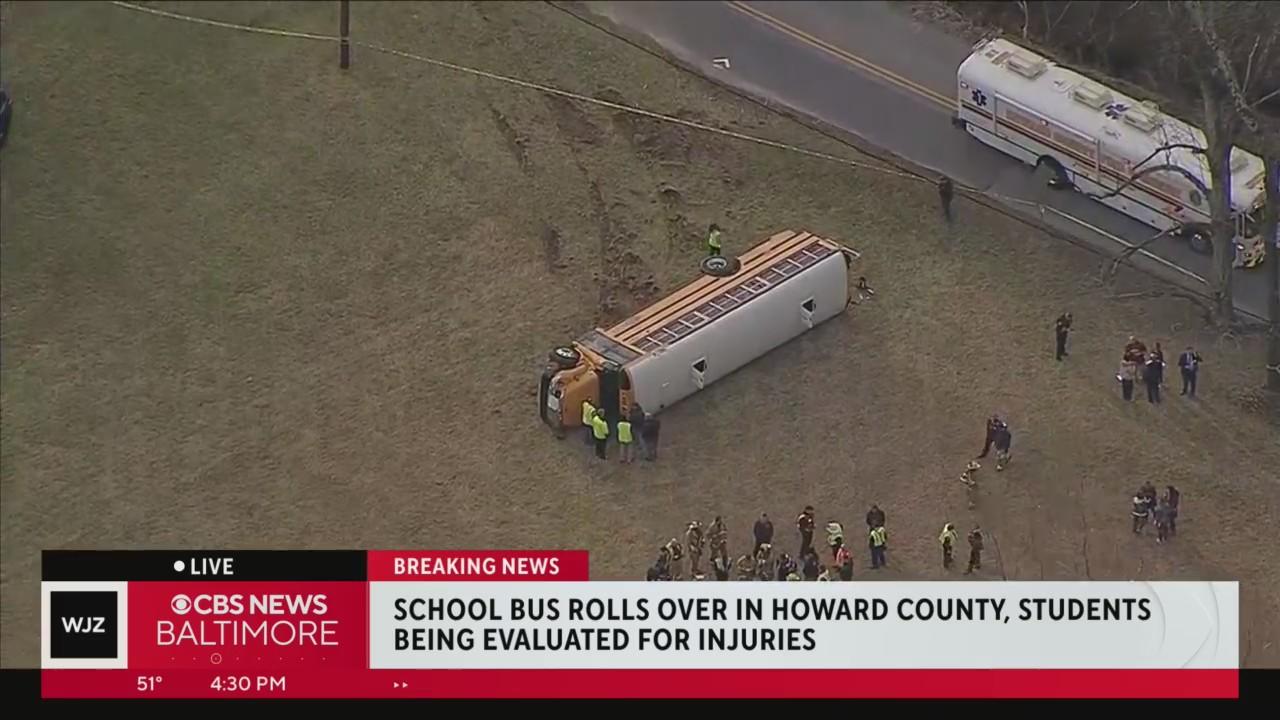Students evaluated for injuries after school bus overturns in Howard County