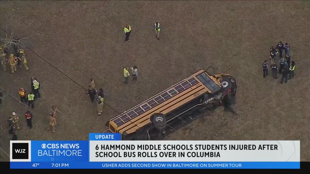 Students hospitalized after school bus overturns in Howard County