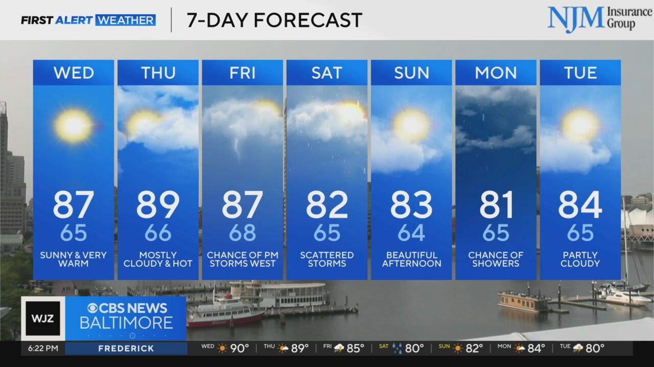 Sunny with warm temps Wednesday in Maryland