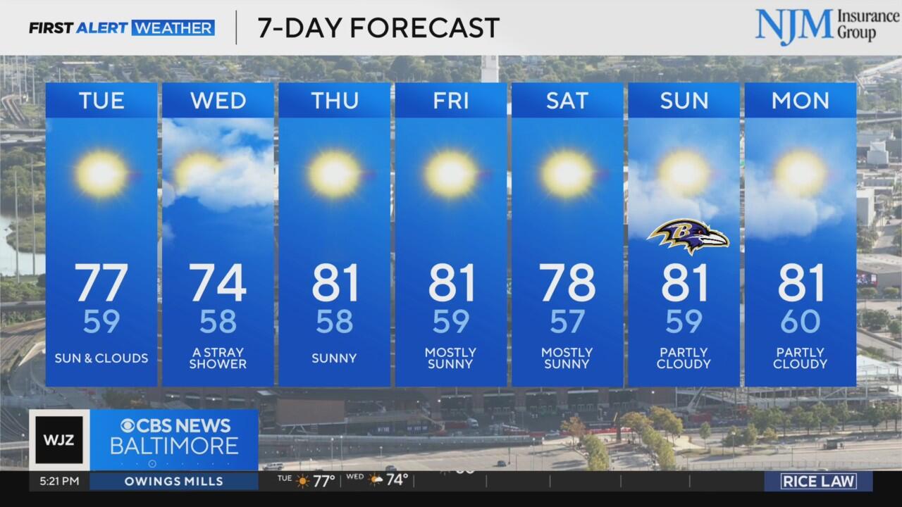 Sunshine and cooler air this week in Maryland