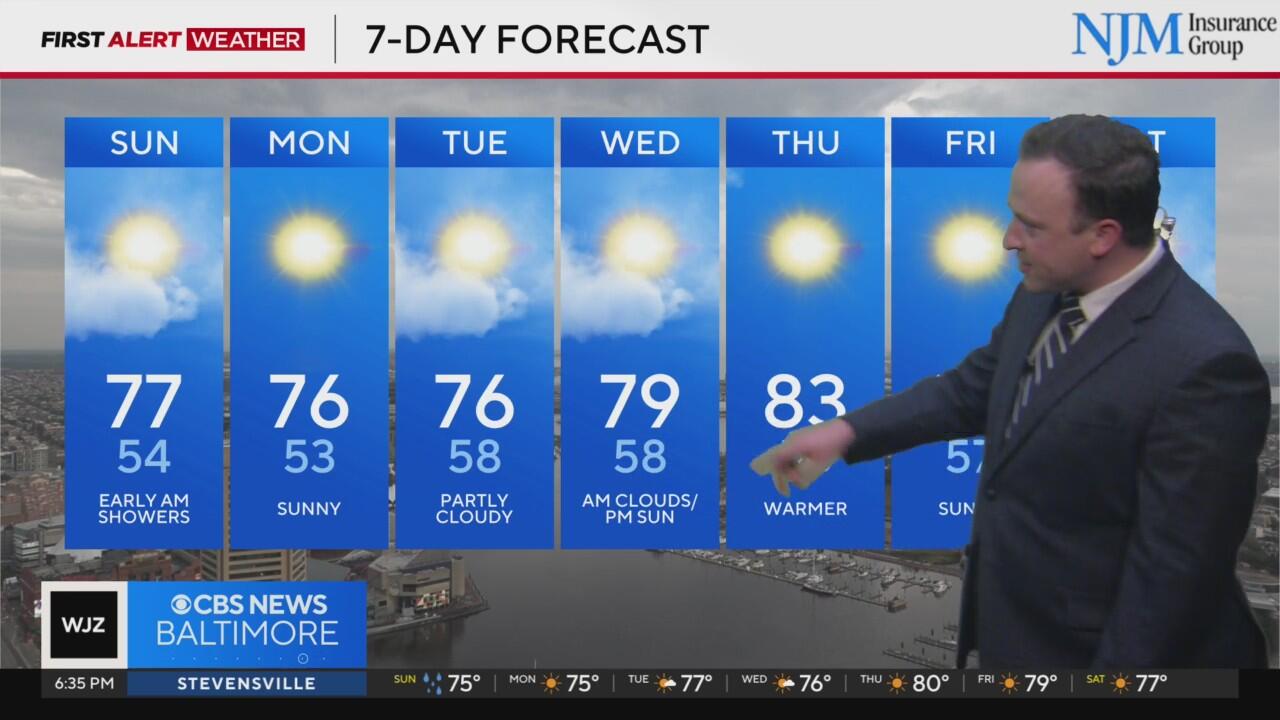 The risk of severe weather is decreasing across Maryland