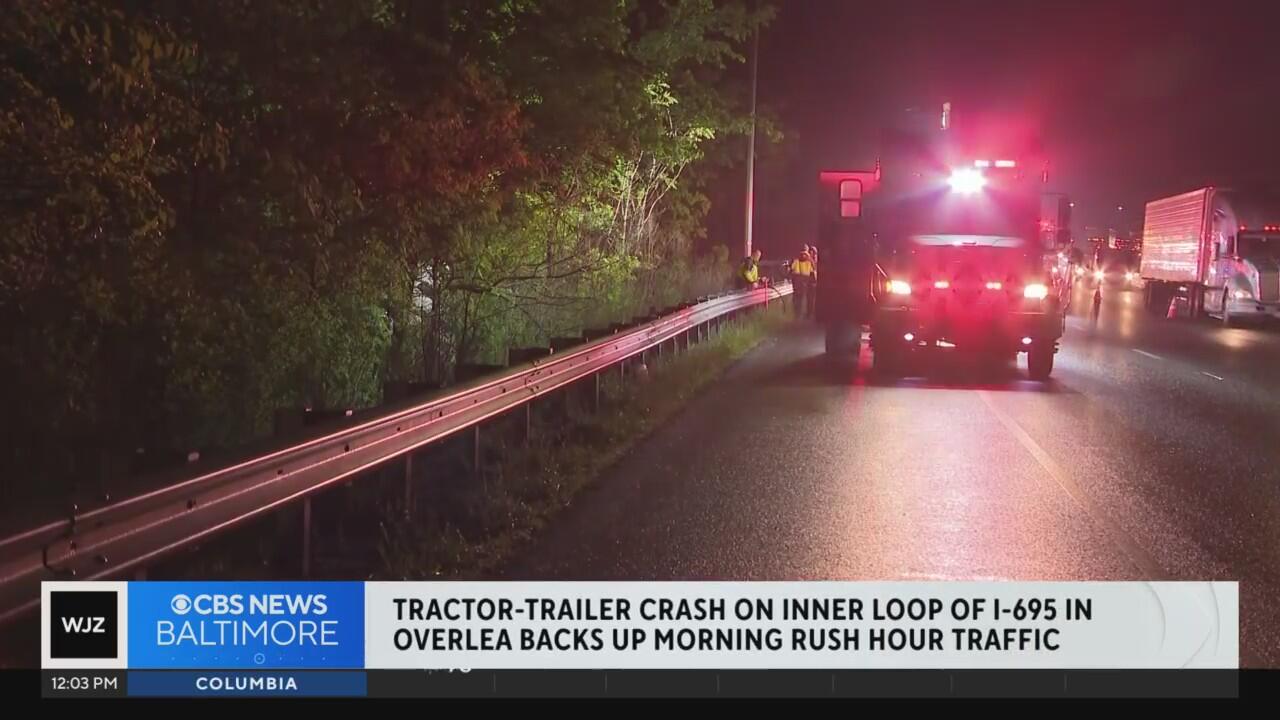 Tractor-trailer crash on inner loop of I-695 in Baltimore County backs up morning rush hour traffic