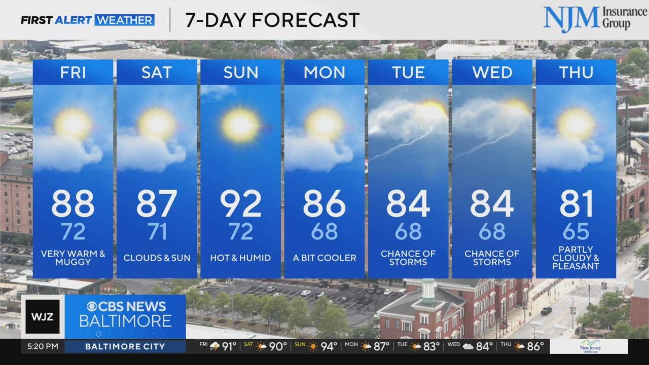 Warm, muggy end of Maryland's workweek