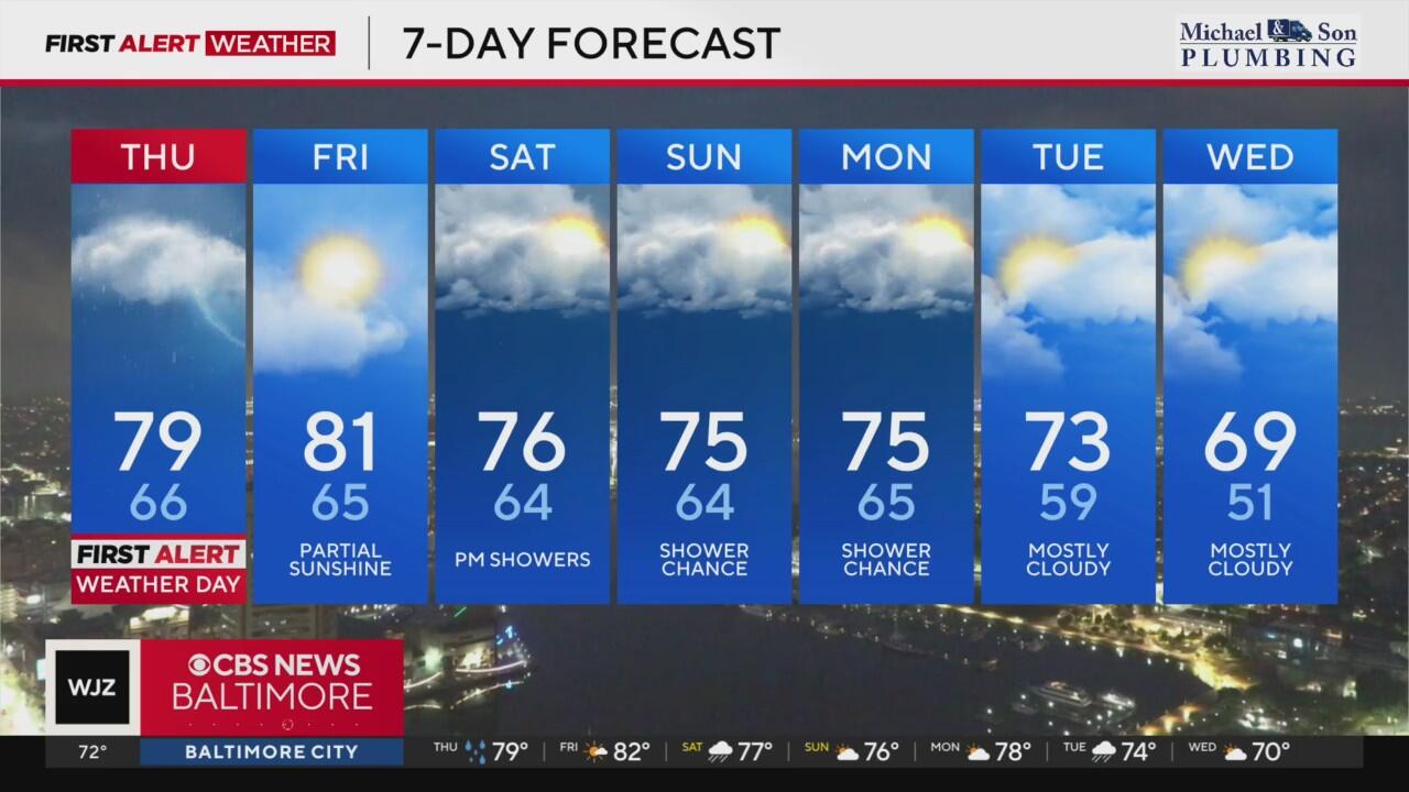 Maryland's unsettled stretch continues, with daily chances for showers and a few thunderstorms sticking around through Thursday night.