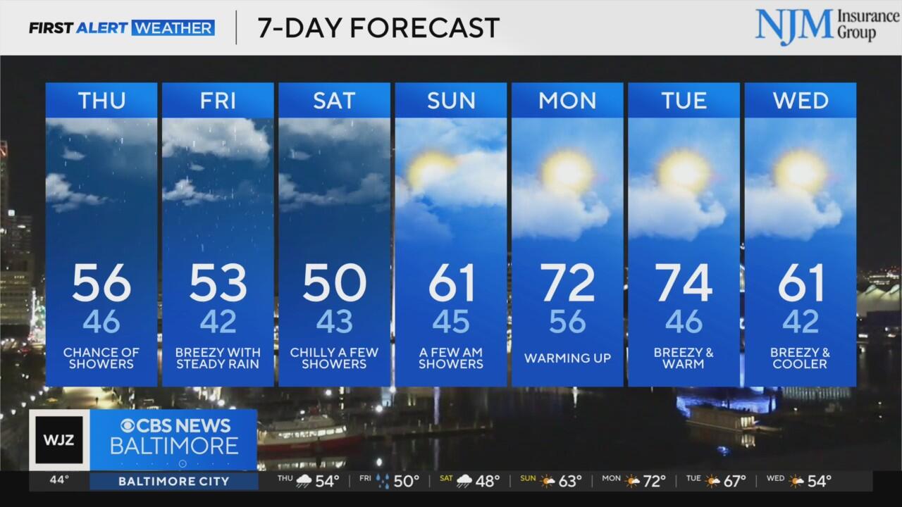 Workweek ends with rain chances in Maryland