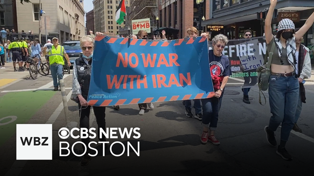 Protesters gathered in Boston denounce the military action between Israel and Iran. WBZ-TV's Beth Germano reports.