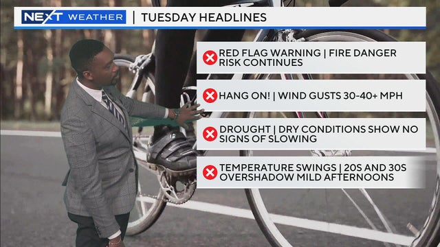There's a red flag warning for the threat of more brush fires in Massachusetts Tuesday. WBZ TV's Chris Tanaka has that and other top stories in Boston.
