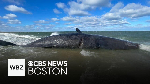 Experts say the whale that washed onto a beach on Nantucket is "far too big" to move.