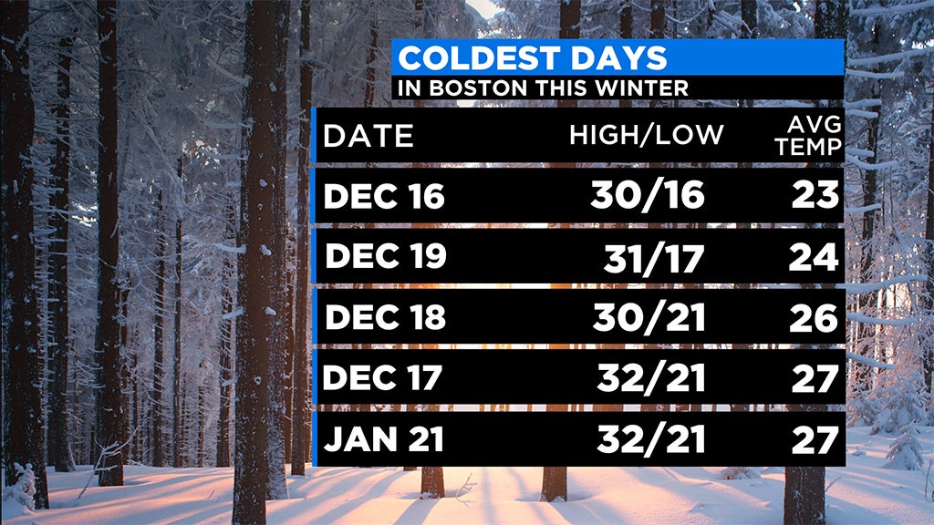 Let's face it, we haven't had to endure any significant, bone-chilling cold yet this winter. We had a little bit of a chill in mid-December when Boston recorded 7 straight days below average, but even then, the coldest it ever got was on the 16th with a high/low of 30/16 degrees. Typically, by now, we have several nights with lows below 10 degrees. And, 2002 was the last time it took this long to have a daily high temperature below 30 degrees.