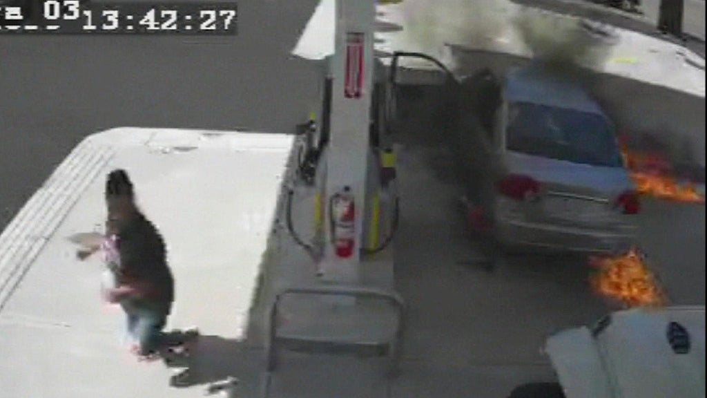 When that doesn't work Lima immediately pressed the emergency fire stop. "Which quickly turns off the pumps and then fire extinguishers comes out which is what the white cloud is in the video," Store manager Angelica Gomez said.
