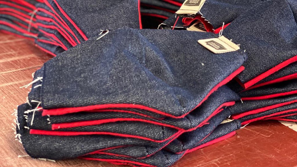Steele Canvas Basket in Chelsea began sewing denim "Keep America Moving" masks at the end of March. For every mask purchased, one is donated to a front line worker. Since then, Steele Canvas has been able to donate 30,000 masks to essential workers around the country.