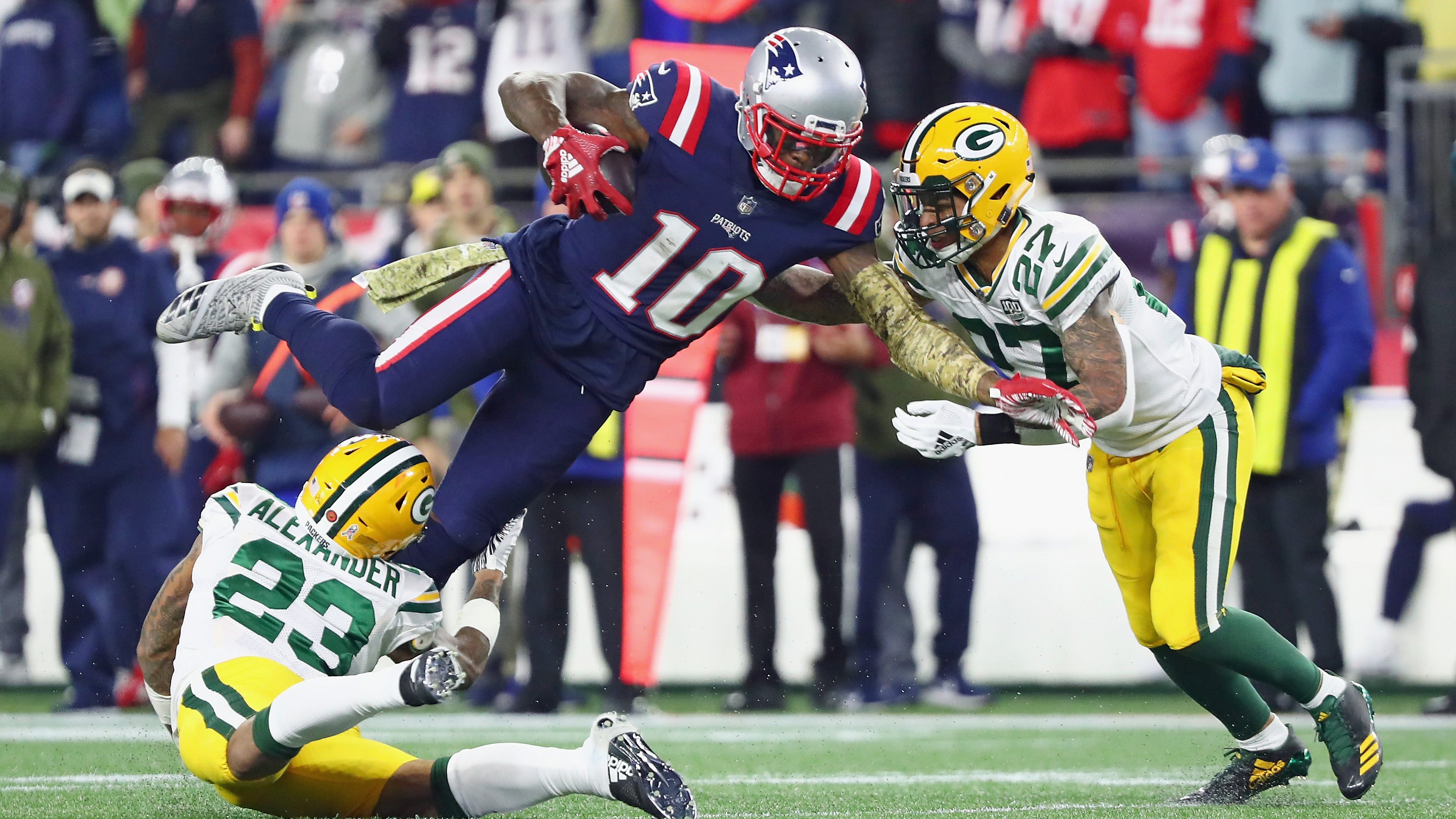 Jason McCourty broke up a pass intended for Marquez Valdes-Scantling late in the first, and he had perfect coverage on Equanimeous St. Brown on a deep ball on Green Bay's drive following the Patriots' go-ahead score in the fourth.