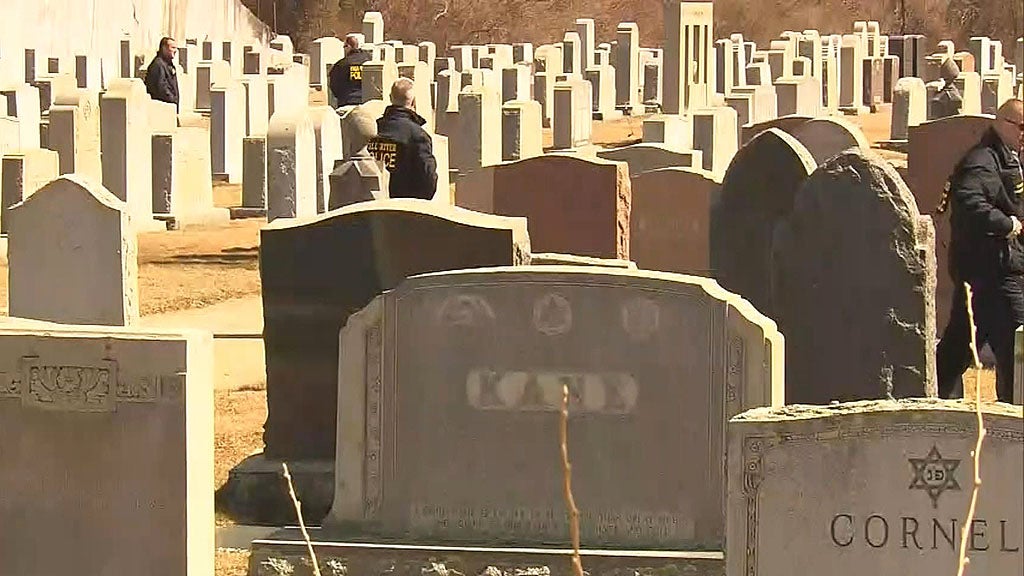 "On one of the headstones the words 'expel the Jews' were written. And we have a message for the individual who wrote it. We will not be expelled. We will not remain silent," said Robert Trestan, director of the New England Anti-Defamation League.
