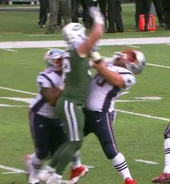 On the same play, Deatrich Wise was awfully late in getting to Josh McCown, but he still delivered a forceful hit and dropped the QB to the ground.