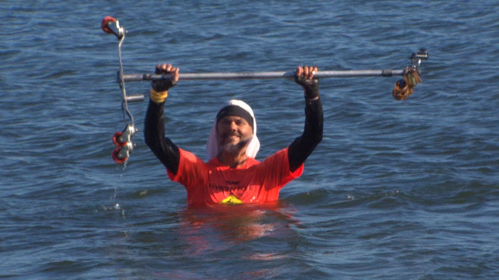 BOSTON (CBS) - With a frigid dip at Carson Beach Wednesday, a California man celebrated a journey of more than 3000 miles to fight cancer. Kevin Fern has spent the last seven months walking from Los Angeles to Boston and he did it pushing an IV pole the entire way.