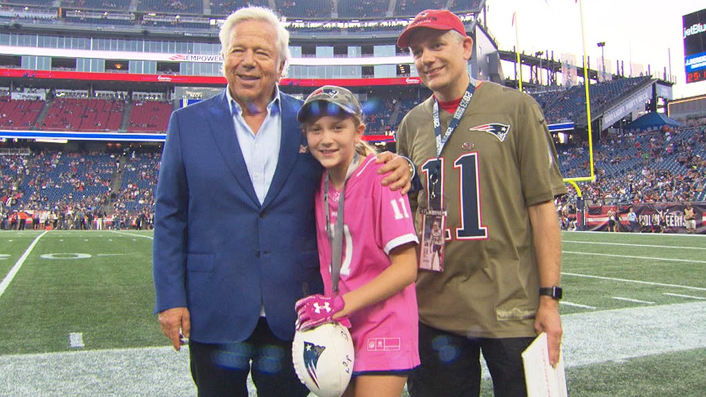 She was on the field at Gillette Stadium Thursday night before the New England Patriots game against the New York Giants and got to meet Patriots owner Robert Kraft.