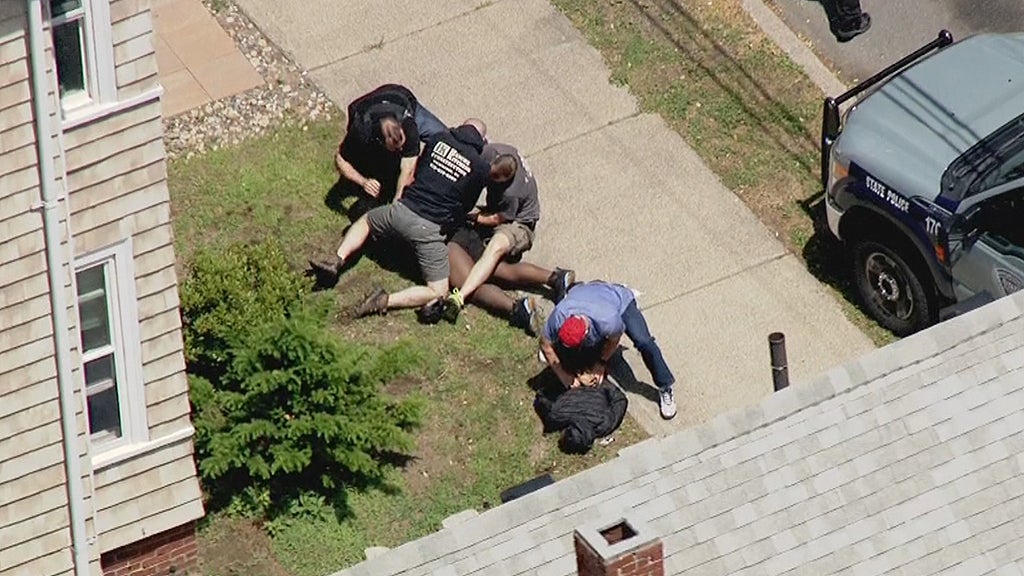 The four people in the car jumped out on Bowler Street in Lynn where they tried to ditch the car. They were quickly taken into custody by police who tackled them on Pond Street. Police had followed them in unmarked cars. The end of the chase was 21 miles from where it started.