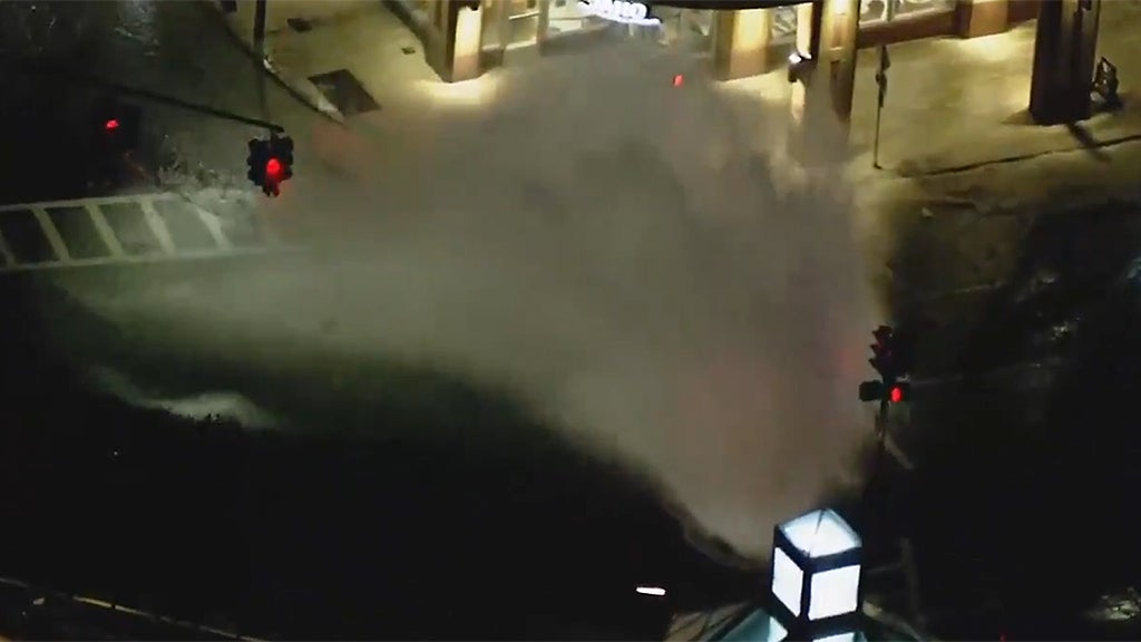 The massive burst happened right outside for Prudential Center around 6 p.m. Wednesday, with water gushing from the road shooting straight into the air.