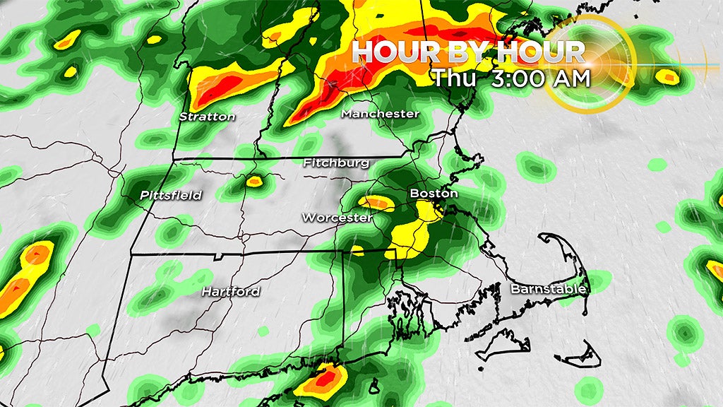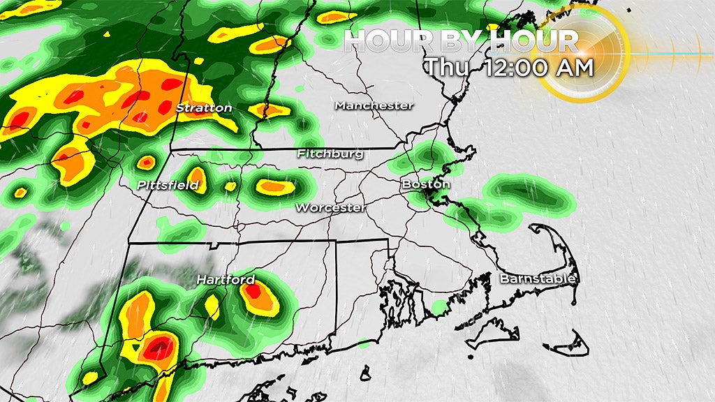 Most of the action will occur between 10 p.m. Wednesday night and 9 a.m. Thursday. It won't be raining the whole time but more of a scattered, off and on type of night.
