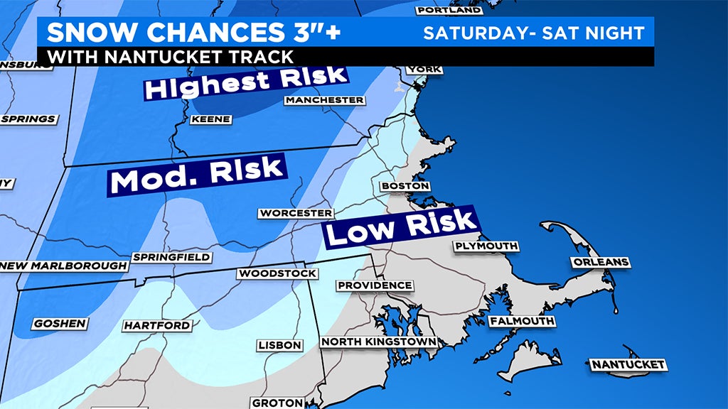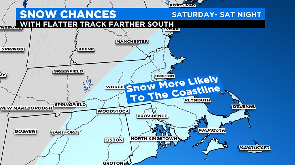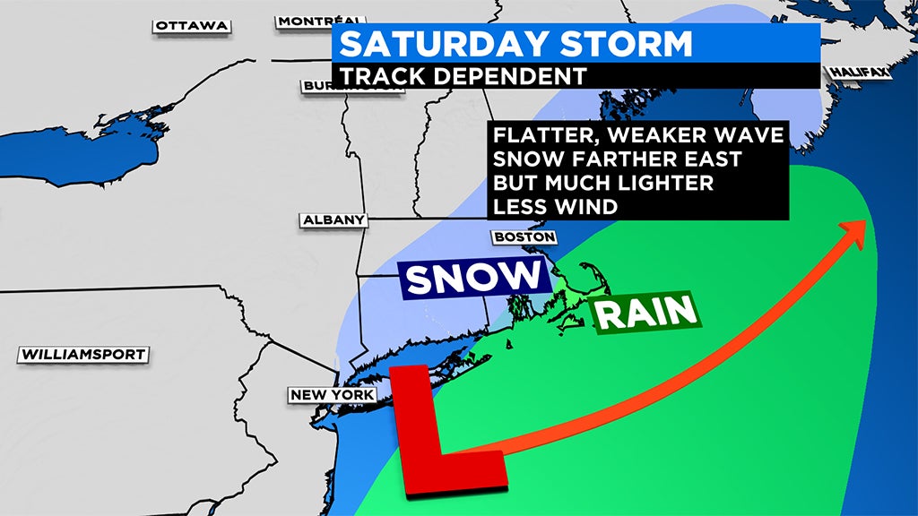 Farther to the north and west, especially in elevated areas, the story is quite different. With a track close enough to the Coastline, we could see significant snow accumulation here. But again, this all depends on the eventual track and intensity of the storm. A weaker storm with a track farther south, could mean nearly nothing well to the northwest of Boston.