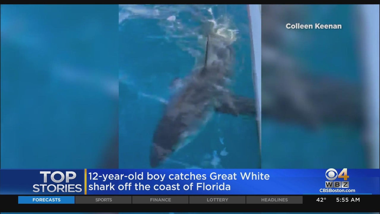 A boy from Massachusetts caught a great white shark off the coast of South Florida.
