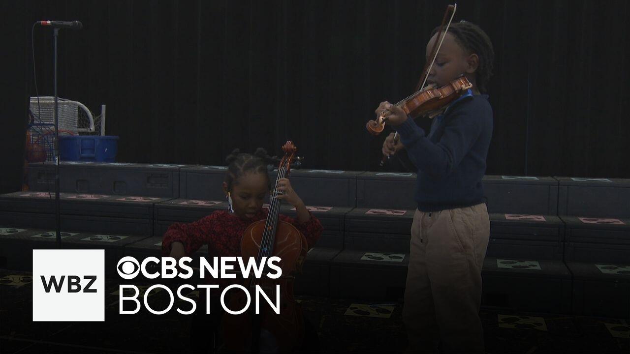 2 young siblings perform private cello and violin concert to thank staff at school in Boston