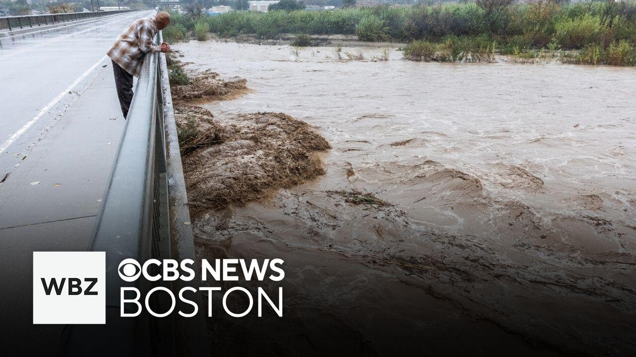 A Christmas Eve storm turned roads into rivers in southern California. CBS News' Gwen Baumgardner reports.