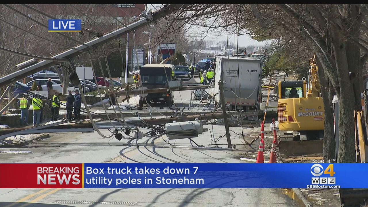 Box truck takes down seven utility poles in Stoneham