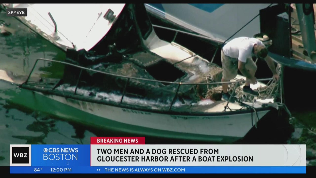 Two men and a dog were rescued following a boat explosion Monday in Gloucester.