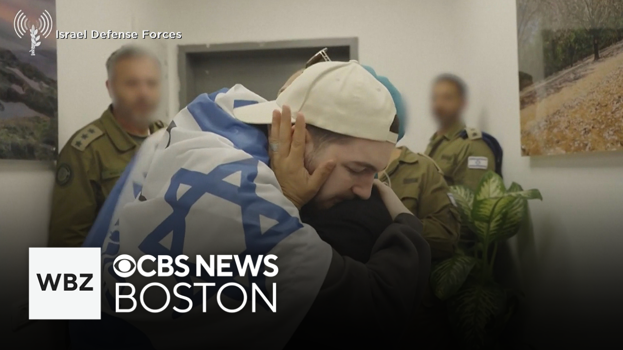 Israeli hostages were released by Hamas in the first phase of the U.S. brokered peace plan. WBZ-TV's Brandon Truitt reports.